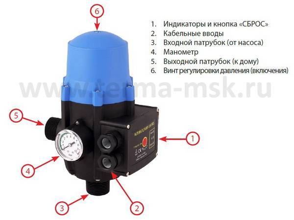 A la base, ce sont des appareils qui combinent deux fonctions : une protection contre la marche à sec et un pressostat d'eau. Certains modèles, en plus de ces caractéristiques, peuvent avoir un manomètre intégré et un clapet anti-retour. Ces appareils sont également appelés pressostats électroniques.Ces appareils ne peuvent pas être qualifiés de bon marché, mais ils offrent une protection de haute qualité, desservant plusieurs paramètres à la fois, fournissant la pression requise dans le système, éteignant l'équipement lorsque le débit d'eau est insuffisant.