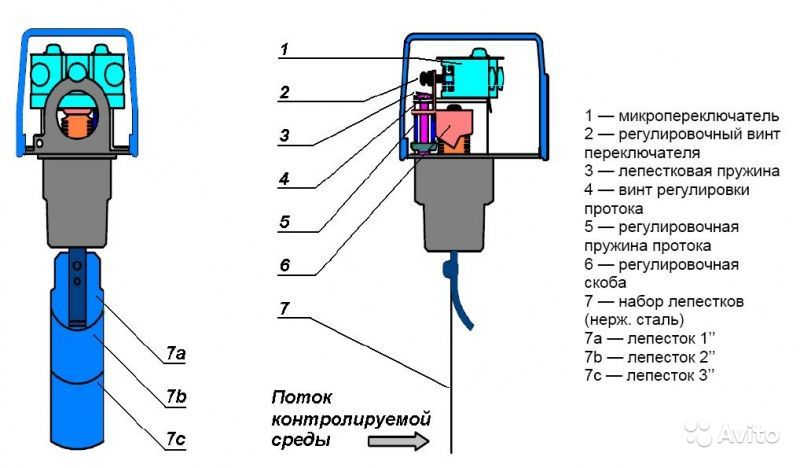 Il sera possible d'augmenter la différence en serrant l'écrou sur un petit ressort, pour le réduire - on réduit les interférences. Frappe-t-il d'autres tuyaux ou le corps de pompe lui-même ?Contrôleur de débit d'eau : appareil, principe de fonctionnement + notice de raccordement