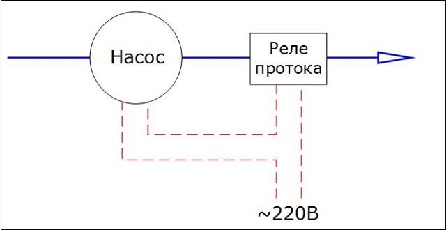 Un des schémas de raccordement de la pompeContrôleur de débit d'eau : appareil, principe de fonctionnement + notice de raccordement