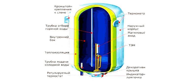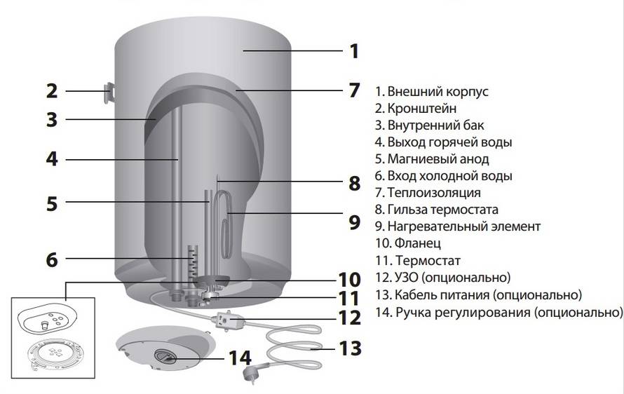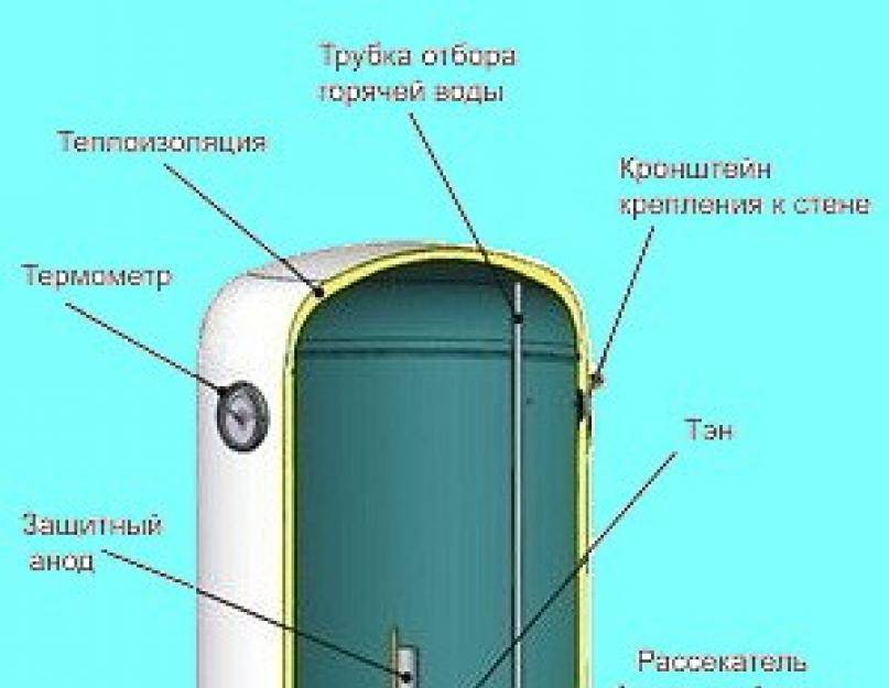 Les radiateurs de toutes les chaudières sont situés dans sa partie inférieure. L'eau du réservoir est chauffée à la température souhaitée, puis utilisée par le propriétaire aux fins prévues. Pour maintenir et, si nécessaire, corriger la température requise, le chauffe-eau thermostat intégré. De plus, la chaudière est équipée d'un thermomètre, avec lequel l'utilisateur peut contrôler le degré de chauffage de l'eau, et d'une soupape de sécurité qui empêche les fuites déraisonnables de liquide.