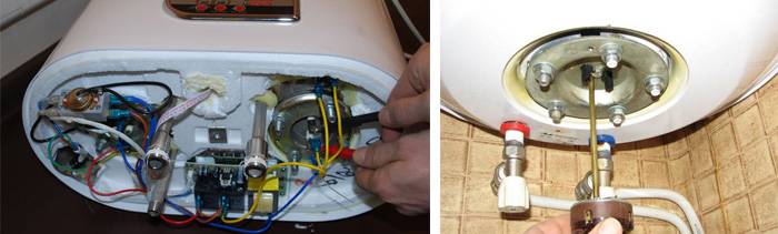 Dans le cas d'un élément chauffant «humide», vous devrez d'abord vidanger complètement l'eau du réservoir, puis effectuer un remplacement. Habituellement, les éléments chauffants «secs» sont moins productifs que la version «humide», par conséquent, non pas un, mais deux éléments chauffants de ce type sont le plus souvent installés dans la chaudière.