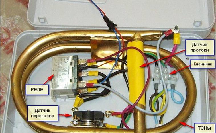 Les modèles de flux fonctionnent différemment. Ils ont également un boîtier et un élément chauffant, mais aucune eau n'est stockée à l'intérieur. L'appareil s'allume au moment où un courant d'eau commence à traverser son corps. Le liquide chauffe rapidement jusqu'à la température souhaitée. Ces appareils sont plus puissants que les modèles de stockage, ils consomment plus d'électricité. Mais leurs dimensions sont compactes et l'installation est un peu plus facile.
