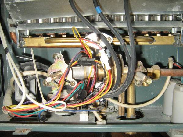 - La présence d'une fuite - la membrane en caoutchouc du réducteur d'eau a percé, la corrosion a corrodé l'échangeur de chaleur (un serpentin en cuivre est installé sur la colonne Mohr, il y aura un revêtement vert à la place des fuites).