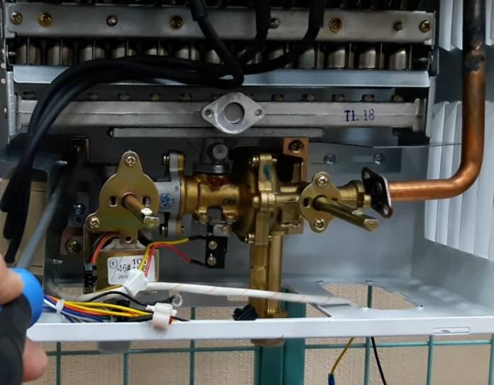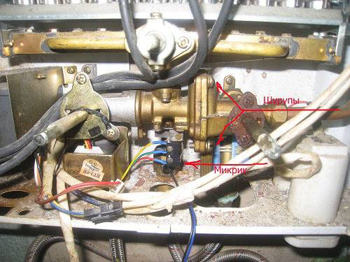 Pour ce faire, retirez le boîtier du chauffe-eau et vérifiez les principaux composants un par un. Il est préférable d'effectuer toutes les actions avec un assistant. On devrait lui demander d'ouvrir l'eau chaude et il doit lui-même surveiller les mouvements de la tige. Le rôle de cet élément est d'agir sur le plateau de pression pour l'éloigner du bouton du micro-interrupteur.