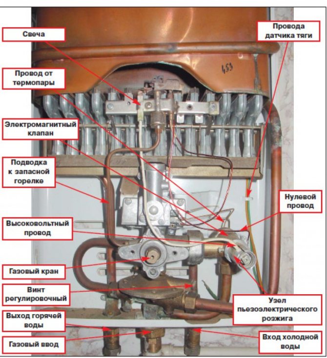 Le plus souvent, vous pouvez rencontrer une situation où la colonne n'allume initialement pas de flamme.Vous devez d'abord déterminer ce qui a spécifiquement conduit à cela. Après tout, le problème peut ne pas être du tout dans l'échangeur de chaleur, mais, par exemple, dans les batteries déchargées. Par conséquent, le diagnostic est indispensable. De plus, certaines pannes peuvent être éliminées de vos propres mains et, dans certains cas, vous devrez appeler un spécialiste du service de gaz.