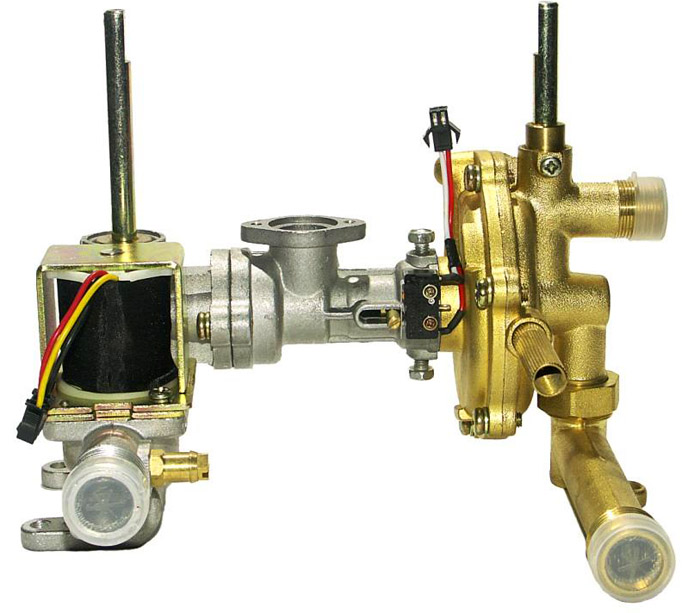 Le plus souvent, les chauffe-eau à gaz sont réparés en raison d'un dysfonctionnement du bloc d'eau. Son travail est que, sous l'influence de la pression du fluide, la membrane à l'intérieur, en se pliant, transmet le mouvement à la tige, et déjà elle déplace le poussoir de l'unité à gaz. En conséquence, la soupape à ressort s'ouvre et l'alimentation du module de commande est activée. Par conséquent, si l'unité d'eau est défectueuse, l'appareil ne démarrera pas.