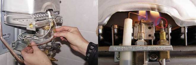 Dans les colonnes avec allumeur, celui-ci peut se colmater : sa flamme devient faible, parfois jaune (c'est ainsi que se manifeste le manque d'air dans le mélange gaz-air). En conséquence, soit il ne peut pas du tout allumer le brûleur principal, soit il le fait après l'entrée d'un grand volume de gaz, à la suite de quoi la colonne s'enflamme avec un pop caractéristique. Après avoir nettoyé l'allumeur, la situation est normalisée.