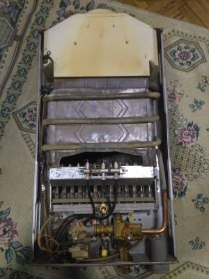 Le processus le plus long, en termes de temps, consiste à nettoyer le tube principal (radiateur) des dépôts qui se produisent lorsque l'eau du robinet est chauffée. Si vous tournez le bouton de gaz jusqu'au bout et que l'eau qui sort est à peine chaude, cela indique que l'échangeur de chaleur est obstrué par du tartre ordinaire, qui ne transfère pas bien la chaleur.