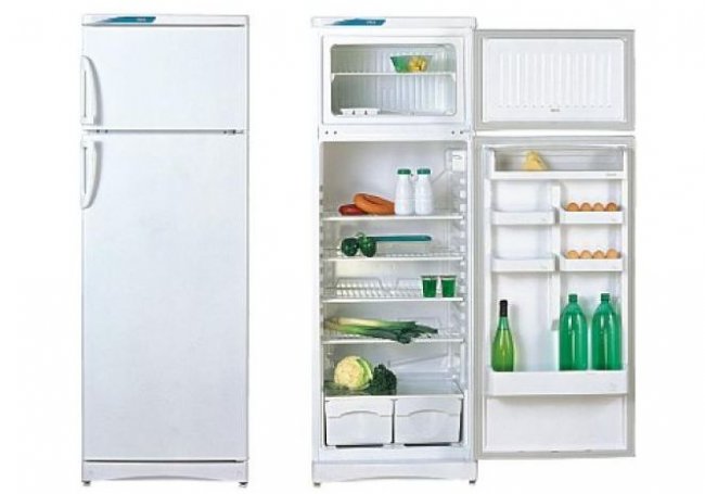 - Réfrigérateur Stinol 107. Il est équipé d'un congélateur situé au bas du réfrigérateur. Système de contrôle - électromécanique, avec 1 compresseur, 2 chambres et 2 portes. Ce modèle dispose de l'option No Frost (dégivrage de l'évaporateur du congélateur en mode automatique).