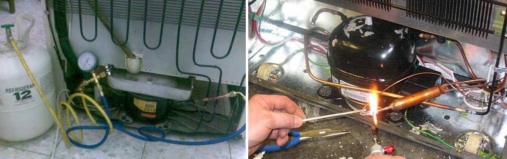 - Dysfonctionnement du motocompresseur. Avec une utilisation prolongée, les pièces du moteur s'usent, par conséquent, le compresseur n'a pas assez de puissance pour pressuriser le tube, de sorte que la température de consigne n'est pas atteinte. Le moteur doit être remplacé.