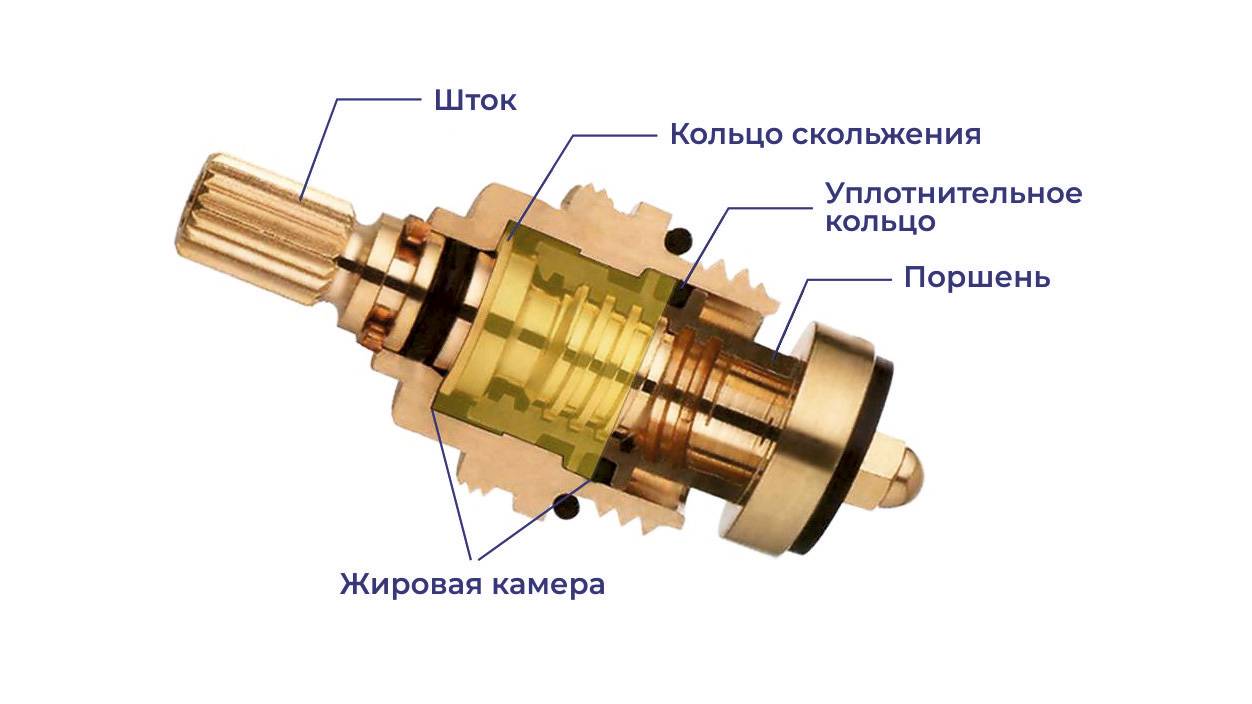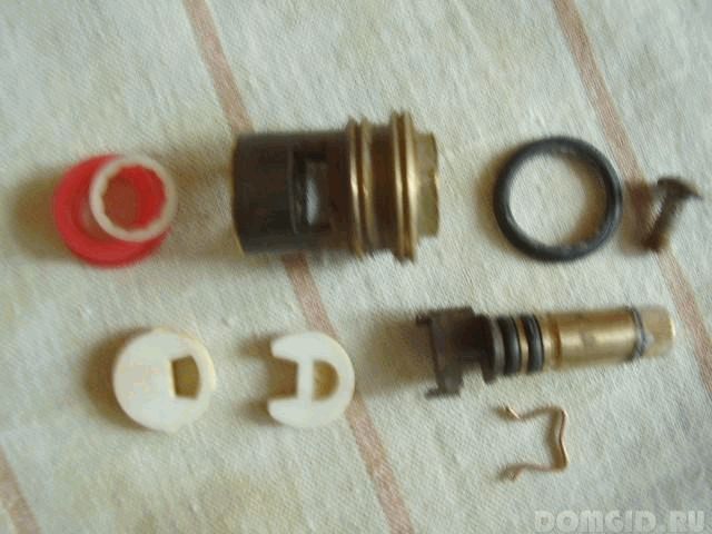 Parfois, la raison de l'échec d'un tel mécanisme est l'usure du filetage "ver", mais dans la plupart des cas, il s'agit de l'usure du joint en caoutchouc sur le piston, il n'est donc pas nécessaire de remplacer le boîtier du robinet dans le mélangeur ici - il suffit de changer le joint (clapet).