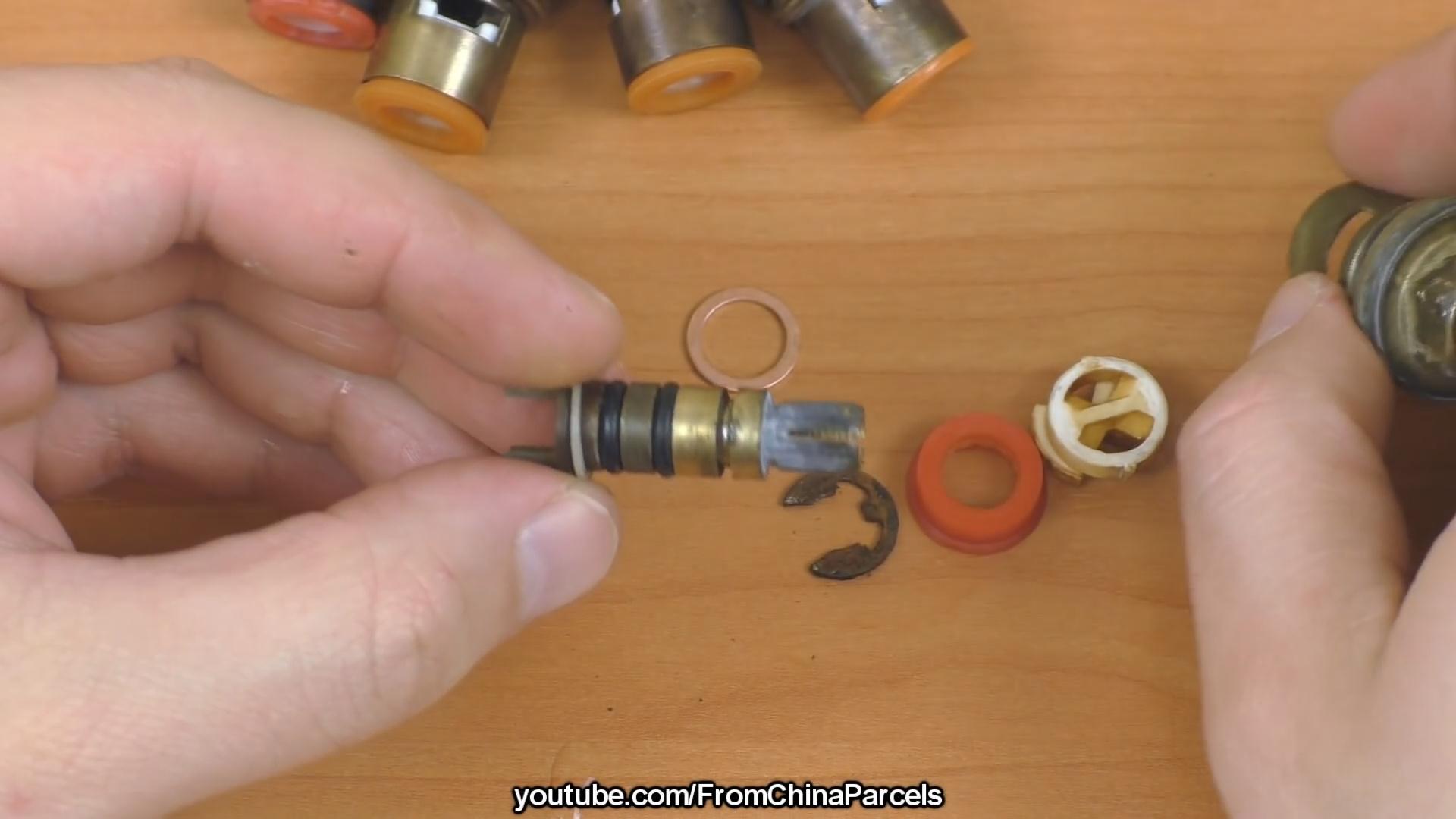 Maintenant, vous pouvez simplement aller au magasin avec le mécanisme de verrouillage retiré et acheter le même, heureusement, son prix est bas, mais vous pouvez vous éviter d'acheter si vous le démontez et le réparez. Pour ce faire, retirez la bague de retenue de la tige et pressez la paire en céramique avec le joint hors du corps avec sa tige. S'il y a une plaque sur le corps, vous devrez frapper l'extrémité de la tige avec un tournevis ou une pince.