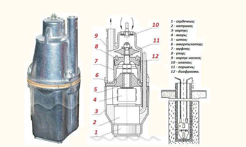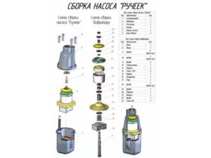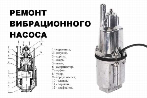Une pompe vibrante correctement configurée et assemblée sans tuyau, lorsqu'elle est immergée dans un récipient d'eau, doit donner une tête de 0,2 à 0,3 m et fonctionner sans problème à une tension normale dans le secteur 220V plus / moins 10V. Si, après réglage, l'équipement ne fonctionne pas ou ne fonctionne pas de manière satisfaisante, il est alors nécessaire d'établir la cause de la panne et de l'éliminer.