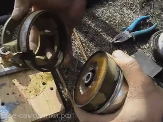 - Pour remplacer (si nécessaire) les roues, il faut fixer l'arbre dans un étau et dévisser l'écrou supérieur.