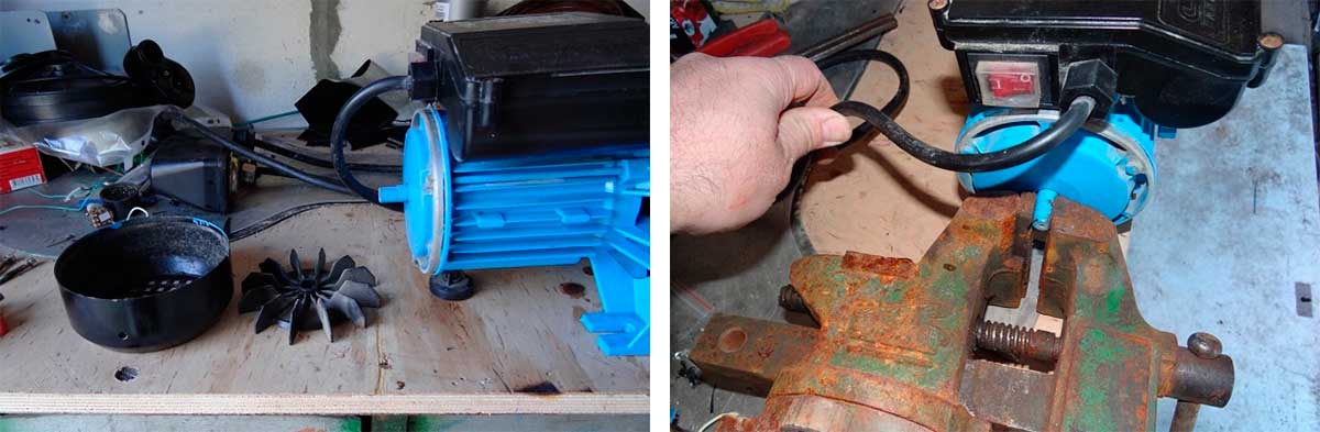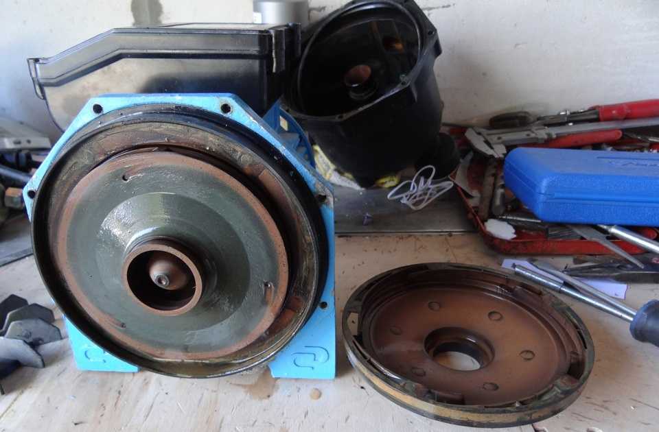 La deuxième partie est plus difficile. Vous devrez retirer le rotor du moteur électrique du stator.Pour ce faire, dévissez les quatre boulons à l'arrière du moteur, retirez le couvercle avec le rotor. Tirez-le simplement vers vous en tenant le couvercle.