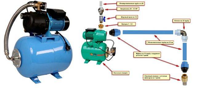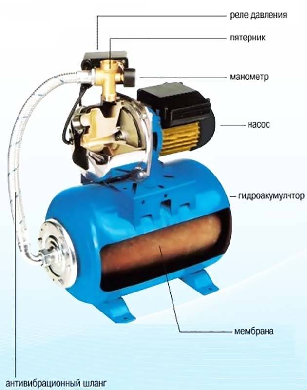 Comme vous pouvez le voir, le concept de "station de pompage" n'est qu'un ensemble de composants et d'équipements pouvant être utilisés seuls. Dans les stations de pompage produites industriellement, toutes les unités principales peuvent être assemblées dans un seul bâtiment, cependant, le plus souvent, une station de pompage finie est un dispositif de pompage installé sur un accumulateur de pression. Aussi, un dispositif de commande automatique est fixé sur un seul châssis.