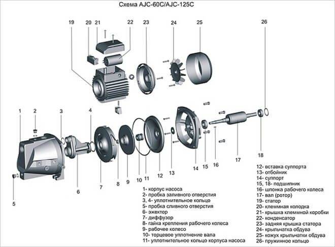 Attention! Si le puits a une grande profondeur, au lieu d'une pompe de surface, la station doit être équipée d'un dispositif submersible. Si vous comprenez le principe de fonctionnement de la station de pompage d'eau, la réparation de l'équipement vous semblera facile.