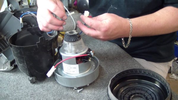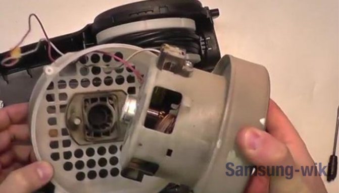 Nous sommes maintenant arrivés à la panne la plus importante et la plus difficile - la réparation du moteur de l'aspirateur Samsung. Pour vérifier cela, vous devez démonter l'aspirateur