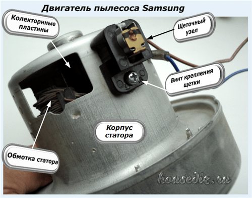 Si toutes les manipulations effectuées n'ont pas abouti et que les étincelles du moteur se poursuivent lorsqu'elles sont allumées, le moteur est court-circuité. Cela ne fonctionnera pas pour faire une réparation indépendante du moteur de l'aspirateur Samsung (et de tout autre aussi) à la maison, vous devrez le porter au service.