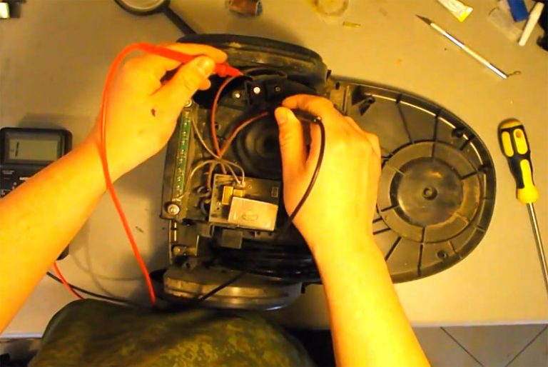 Si vous soupçonnez une rupture de fil, vous devez tester la tension dans les nœuds restants avec un multimètre. Après avoir composé et trouvé le lieu de la rupture, le dysfonctionnement peut être rapidement éliminé avec un fer à souder conventionnel. Avant de sonner, assurez-vous que le moteur de l'aspirateur n'est pas hors tension : cela arrive souvent lorsque le capteur de température se déclenche. S'il s'avère que le moteur est hors tension, ne vous précipitez pas avec la numérotation et d'autres actions. Il s'agit très probablement d'une simple surchauffe. Une fois l'aspirateur refroidi, il restaurera automatiquement ses performances.