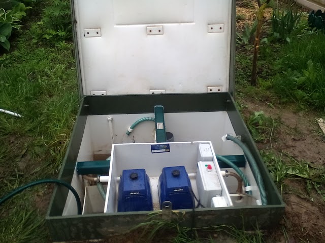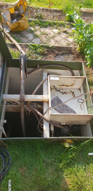 Nous abaissons la pompe avec un tuyau au fond de la chambre de stabilisation des boues, abaissons l'extrémité du tuyau dans un récipient préalablement préparé pour collecter les boues ou directement dans la fosse à compost. Nous allumons la pompe et pompons environ 50% du volume (environ 1 mètre de colonne de liquide). Nous lavons les parois du stabilisateur de boues des précipitations et le remplissons d'eau propre jusqu'au niveau d'origine.