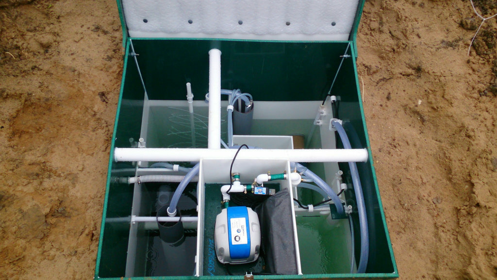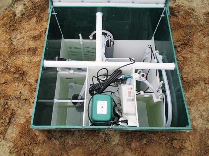 - N ° 1 - il accepte tout ce qui vient de votre maison par les canalisations d'égout.Dans cette chambre, les drains s'accumulent jusqu'à remonter au niveau supérieur. Ceci sera signalé par un flotteur, qui est équipé d'un interrupteur. Il indique à son tour au compresseur qu'il faut déverser les effluents liquides dans le compartiment suivant. Lors du déplacement des eaux usées, les grosses particules restent dans cette chambre et les liquides flottent dans la seconde. Entre eux, il y a un filtre grossier qui ne laissera pas les cheveux entrer dans la chambre n ° 2.