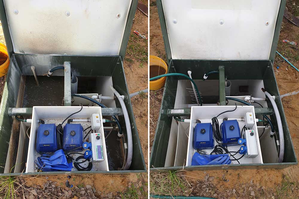- La membrane du compresseur de la fosse septique est défaillante, elle pompe de l'air dans l'airlift. Il est nécessaire de démonter le compresseur et de remplacer la membrane.