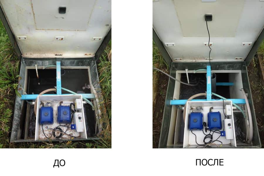 D'autres chambres doivent également être nettoyées de temps en temps. Par exemple, avec un filet, à partir de la première chambre, vous pouvez enlever la couche supérieure de graisse, ainsi que les gros déchets solides qui se déposent au fond. En général, le nettoyage se fait comme suit :