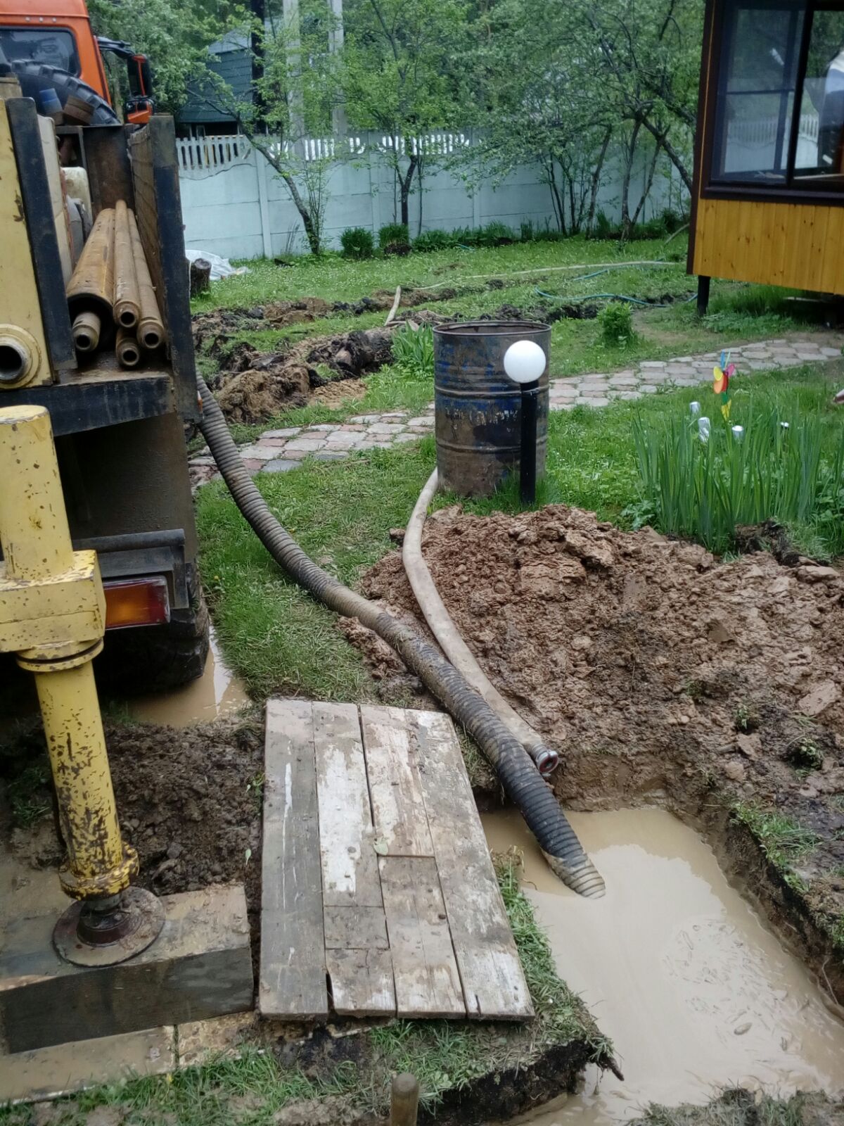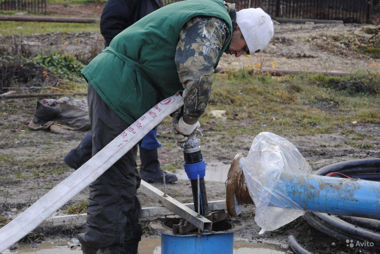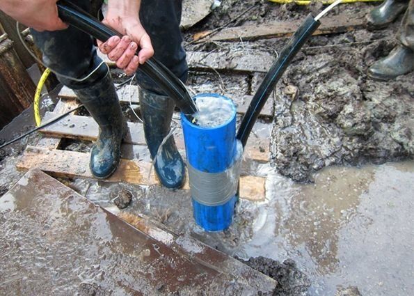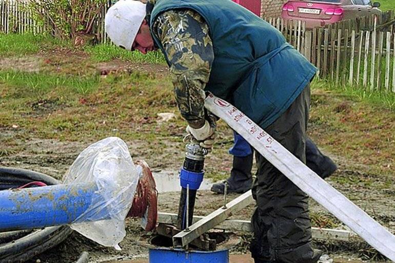 Si ces problèmes sont résolus, vous pouvez vous mettre au travail. Le tuyau est relié à la pompe et descendu au fond du puits