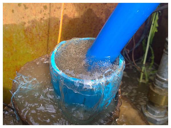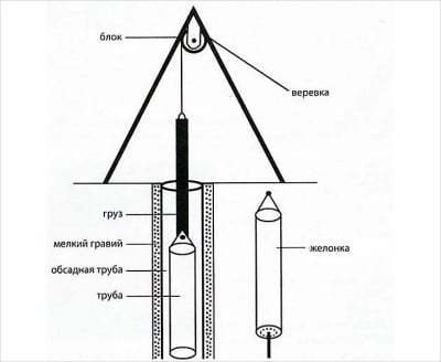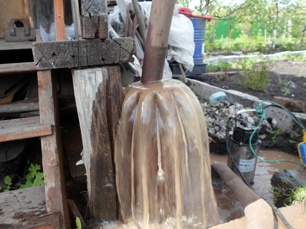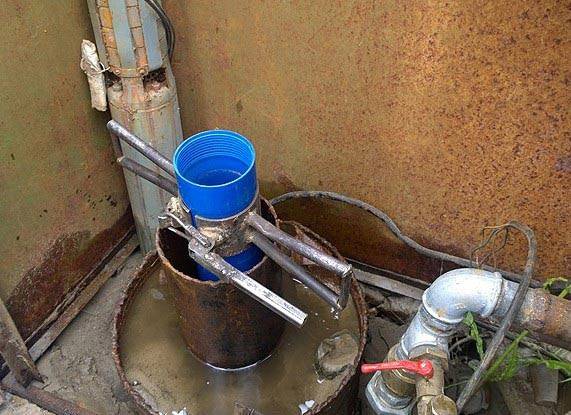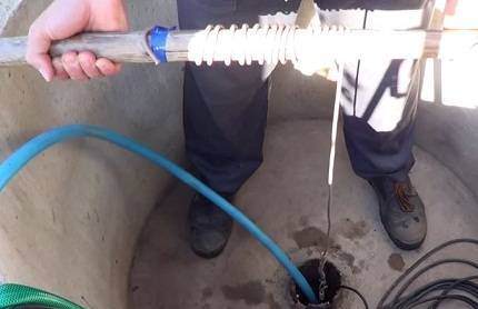 Cette option de nettoyage du puits sera la plus simple et la plus rapide. C'est pourquoi il est considéré comme le plus courant et a trouvé une application même dans les mines avec un récepteur rétréci, c'est pourquoi l'utilisation d'une pompe profonde conventionnelle n'est pas possible.