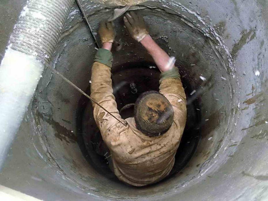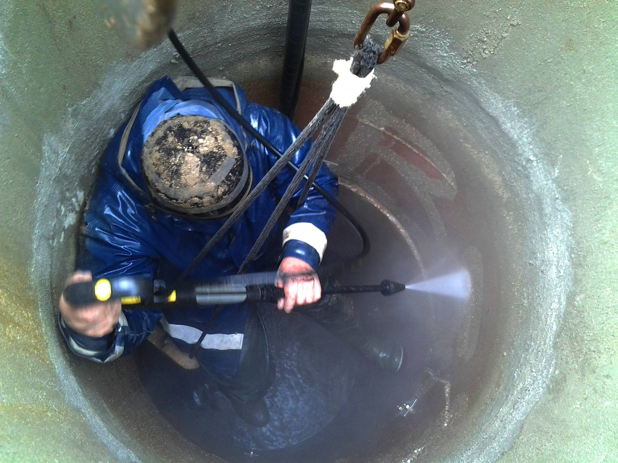 Travaux de nettoyage dans le puits