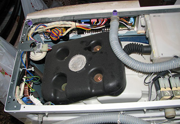 L'inconvénient le plus courant est la perte d'eau due à l'endommagement ou à la destruction du joint torique situé entre le hublot et le réservoir de la nacelle. Ces vibrations peuvent entraîner le desserrage des boulons du hublot montré sur la photo.