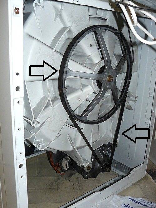 • Le tambour ne tourne pas lorsque le moteur tourne - la courroie d'entraînement est cassée, les roulements ou les balais du moteur sont usés. Il est possible qu'un corps étranger se soit introduit dans l'espace entre le tambour et le réservoir ;