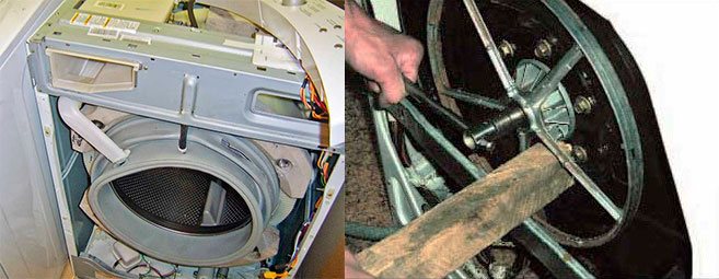 Certains types de pannes ne sont typiques que pour les machines à chargement par le haut et nécessitent les connaissances d'un professionnel. Il s'agit par exemple de l'ouverture spontanée des volets du tambour lors du balourd, qui entraîne l'arrêt du tambour et la rupture de la courroie d'entraînement.