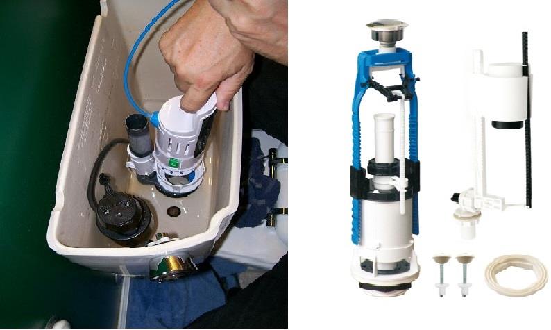 Actuellement, de nombreuses modifications différentes des cuvettes de toilettes et des réservoirs correspondants ont été créées, mais le principe de fonctionnement du mécanisme interne est le même pour tout le monde.Le dispositif de vidange de toutes les modifications est basé sur un dispositif de vidange de l'eau et des vannes d'arrêt, qui se compose d'une vanne d'admission et d'un flotteur. Le dispositif d'alimentation en eau est fixé au trou situé en haut à droite ou à gauche du baril. Un joint en caoutchouc est placé à l'intérieur pour fixer la valve et un écrou en plastique est vissé à l'extérieur.