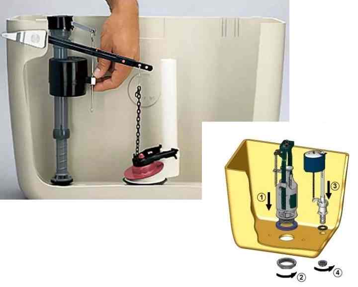 Lorsque le liquide pénètre par la vanne, le flotteur monte et au bon niveau appuie sur le bouchon en plastique avec un joint en caoutchouc au bon niveau. Elle, à son tour, ferme la buse d'alimentation en eau. Pour éviter les débordements, le flotteur peut être réglé. Pour ce faire, son levier doit être plié pour que le liquide soit juste en dessous du tuyau de vidange. Si le levier est en plastique, il est prévu de le régler avec un cliquet ou une vis de fixation.