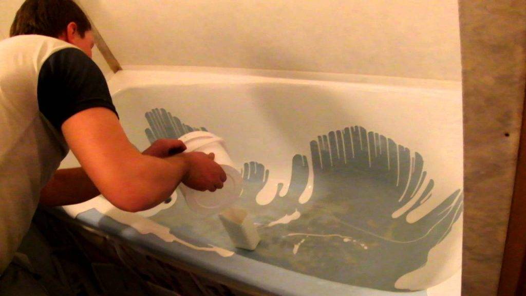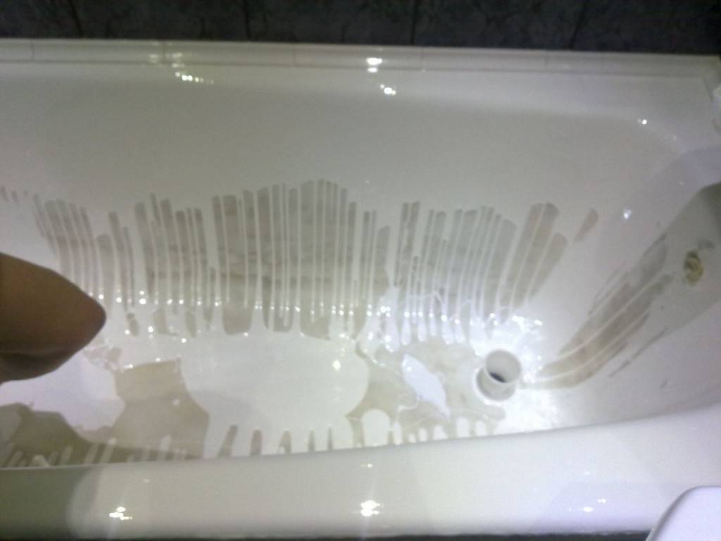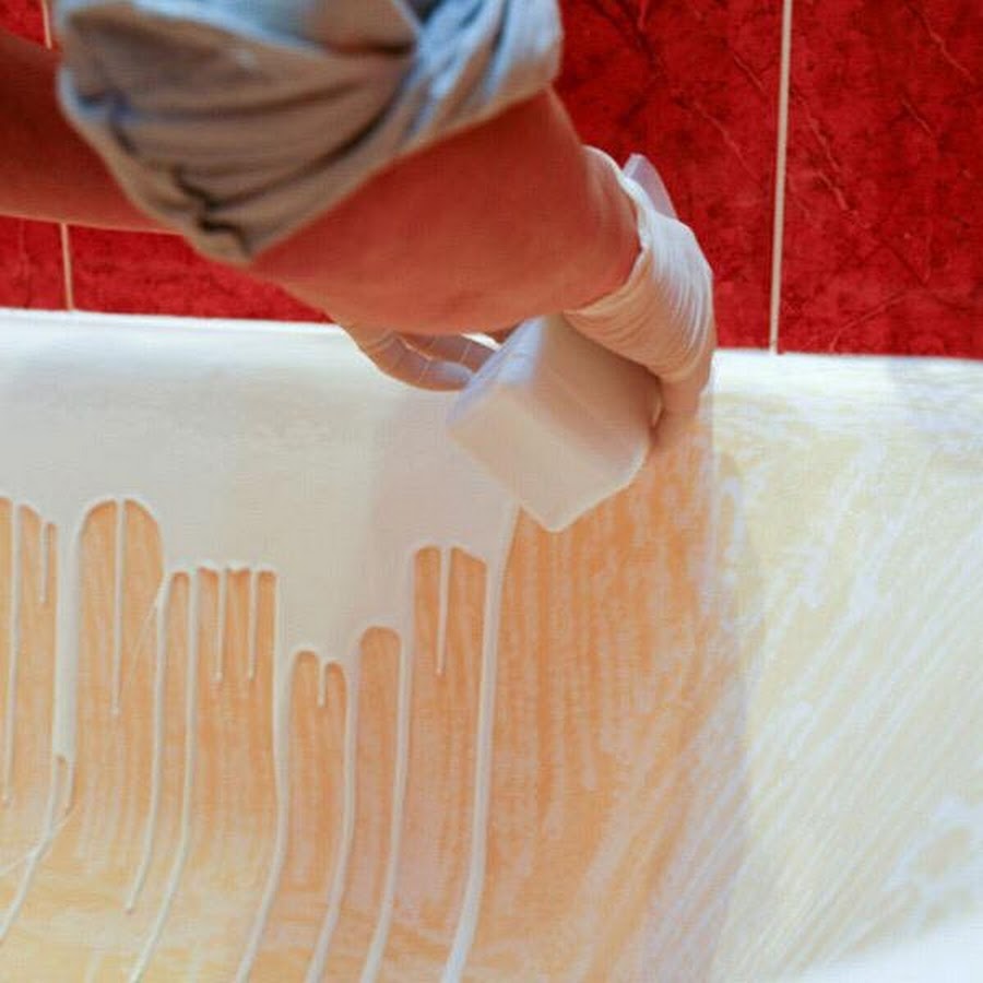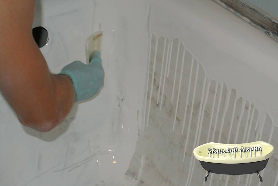 Restauration de baignoires à l'acrylique liquide : comment bien recouvrir une vieille baignoire avec un nouvel émailApplication d'acrylique liquide sur la surface du bain