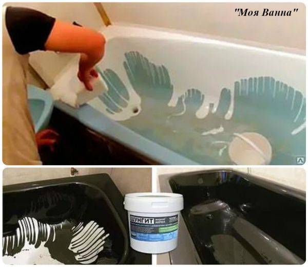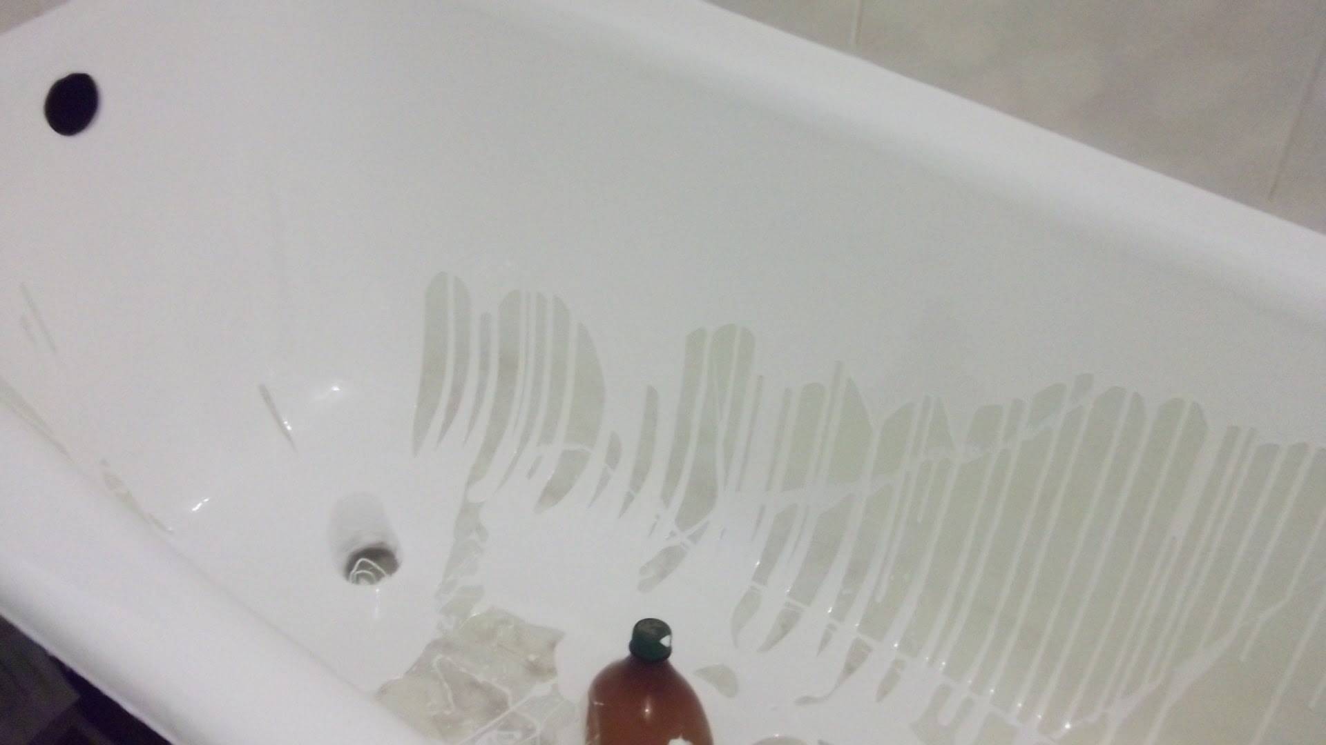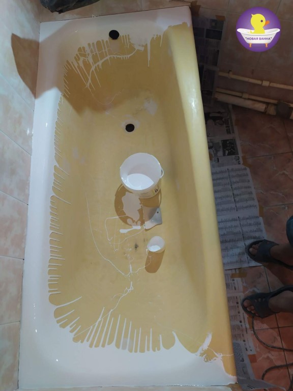 Après séchage, vous devez fermer le robinet avec un film de polyéthylène, fermer les murs près de la baignoire avec du ruban adhésif, retirer le siphon. Un récipient est mis en place du siphon.. Les travaux préliminaires étant terminés, la restauration peut commencer