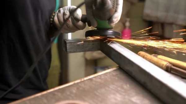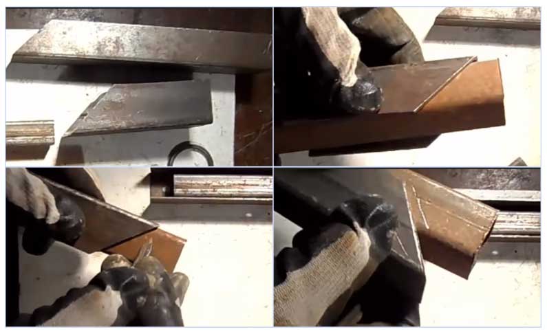 L'utilisation d'un gabarit n'est pas très pratique - vous devez faire une coupe le long de la ligne, en tenant la meuleuse sur le poids, ce qui entraîne de grosses erreurs. Si vous avez une machine à souder, vous pouvez créer une simple boîte à onglets - des guides pour le disque de la meuleuse, l'empêchant d'aller sur le côté.