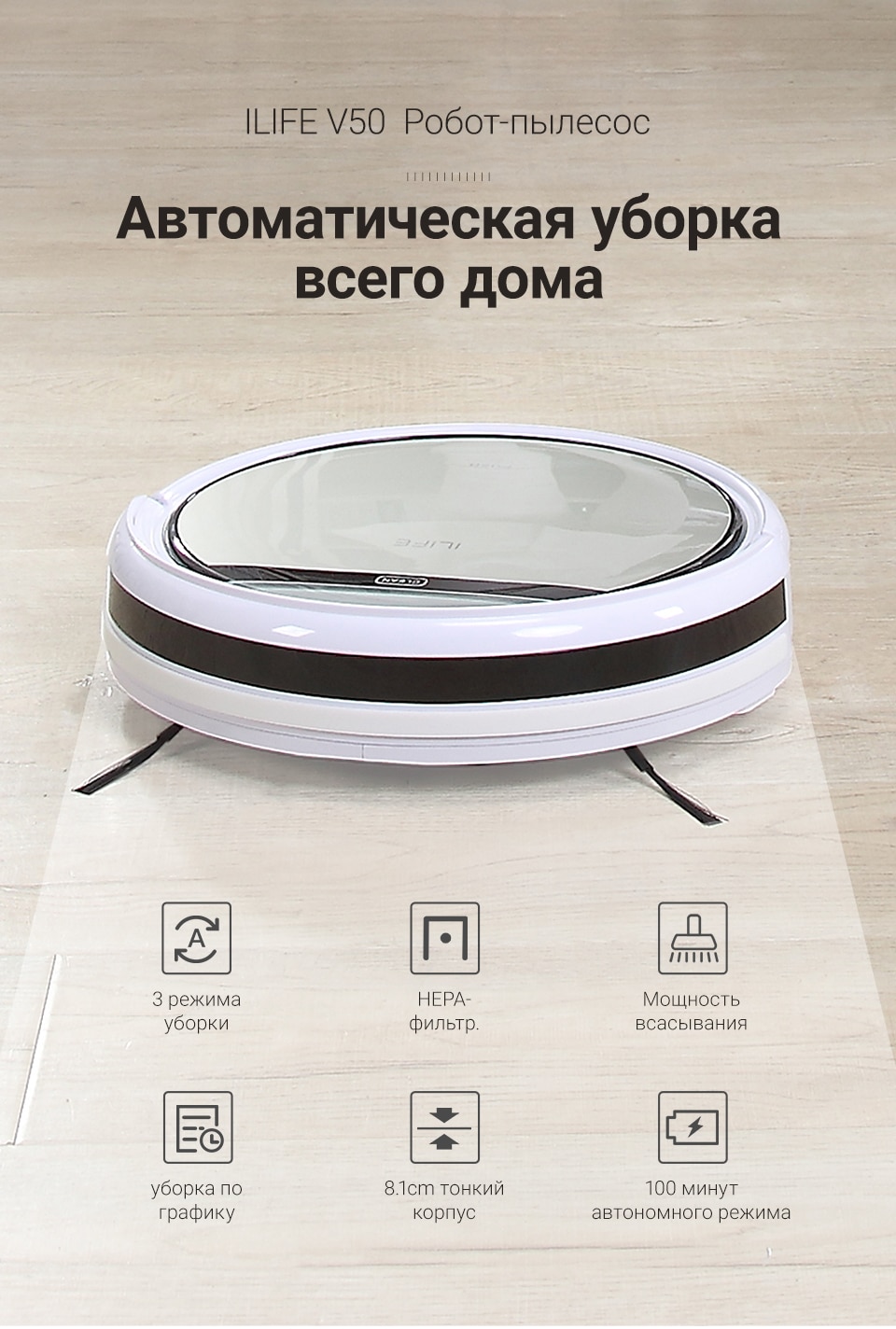Excellente flottaison et maniabilité grâce à la forme en D, aux roues de type chenilles et à la brosse latérale agrandie. Intéressant 7 modes de fonctionnement. Le mode «cuisine» mérite une attention particulière pour un nettoyage en profondeur du sol des taches tenaces. L'aspirateur divise la pièce en carrés de 1,5 m × 1,5 m, les mouille avec de l'eau puis repasse dessus en éliminant les taches déjà dissoutes. Puissance d'aspiration impressionnante de 2100 Pa, batterie de 2750 mAh (jusqu'à 90 minutes d'autonomie ou jusqu'à 150 m2).