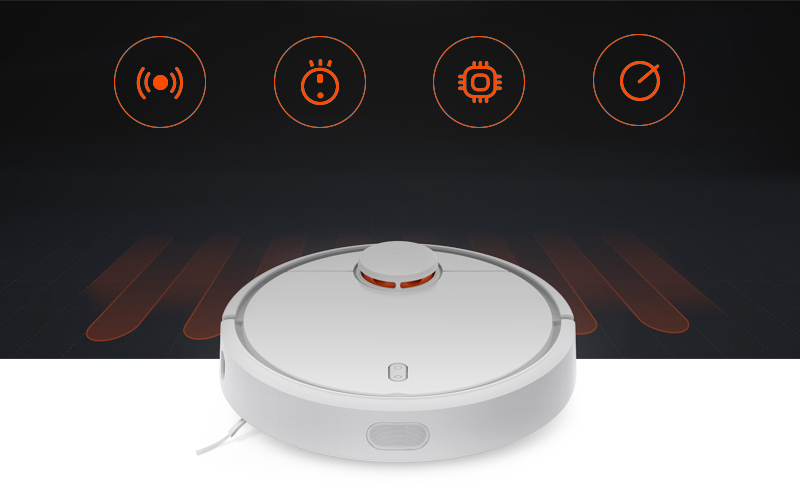 L'aspirateur robot Xiaomi Mi dispose de douze types de capteurs qui permettent à l'aspirateur de fonctionner aussi efficacement que possible. Le robot a une excellente maniabilité et des dimensions de roues bien conçues permettent à l'appareil de surmonter facilement les petits obstacles sur son chemin. La hauteur maximale d'obstacles à franchir déclarée par le constructeur est de 18 millimètres, ce qui est beaucoup.