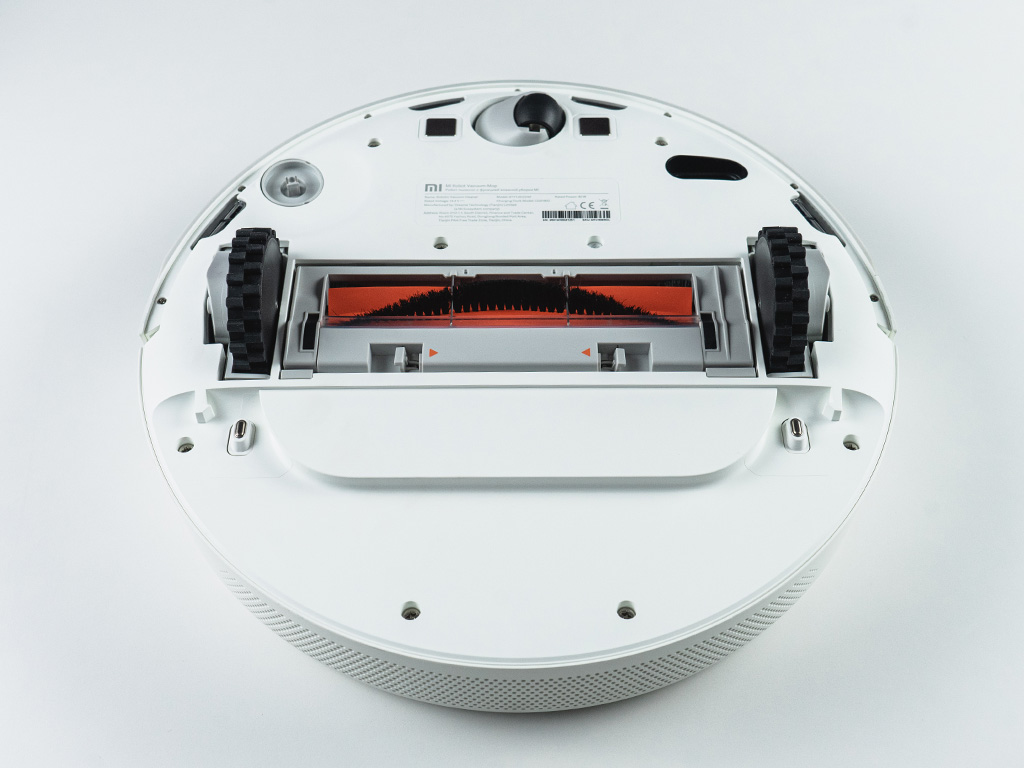 Tout le volume du dos du conteneur est occupé par un filtre HEPA. Pour assurer un ajustement plus serré au boîtier, l'espace autour du périmètre est collé avec un joint en caoutchouc. La partie inférieure du robot Xiaomi n'est pas différente des autres modèles "d'aides à domicile".