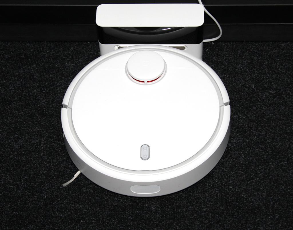 Insérez maintenant Xiaomi Mi Robot dans la station de base. Si les contacts arrière sont correctement installés, le voyant du panneau supérieur clignote.