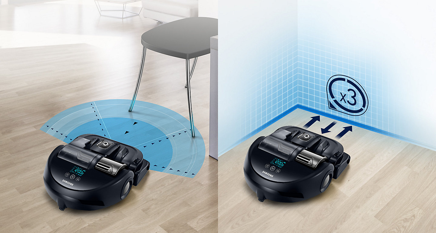 Intelligent&Clean AQUA-Série 03 noir - le robot construit une carte de la pièce, trace le meilleur itinéraire et se souvient de l'emplacement des obstacles. Peut être contrôlé depuis le panneau sur le boîtier, à l'aide de la télécommande et de l'application C&C AQUA-S.