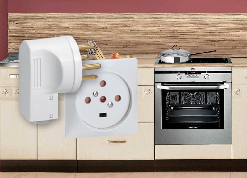 Ce modèle de prise se superpose au modèle standard. Le dilemme se profile, quel type de câble est nécessaire pour le connecter ? La réponse est un câble électrique ordinaire d'un appareil de cuisson, où vous pouvez immédiatement connecter une armoire de cuisson, mais sa puissance ne peut pas dépasser 3 kW. Autrement dit, ils sont connectés à un seul câble.