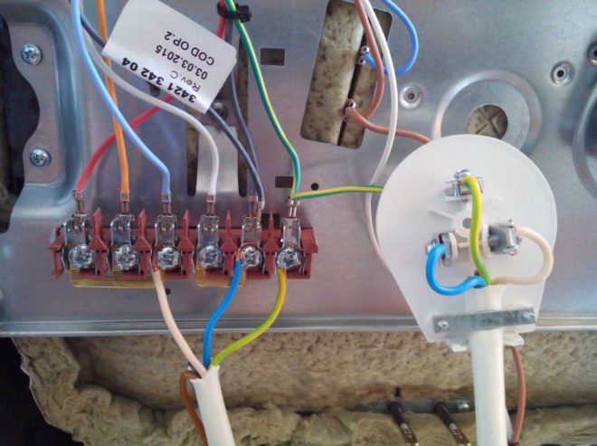 Une telle installation nécessitera une prise de courant spéciale avec mise à la terre, conçue pour une puissance de 30 watts. En connectant les fils à la prise et aux broches, la connexion des fils qui sont connectés sur la machine et la cuisinière électrique à la phase, au zéro et à la terre, aux bornes correctes, est vérifiée.