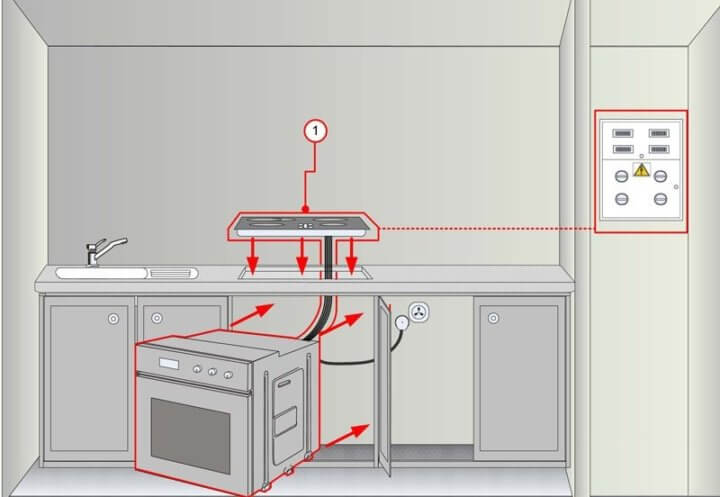 De plus, si la table de cuisson et le four prévoient une installation indépendante, ils nécessiteront deux prises, avec points de connexion individuels sur Tableau de distribution.