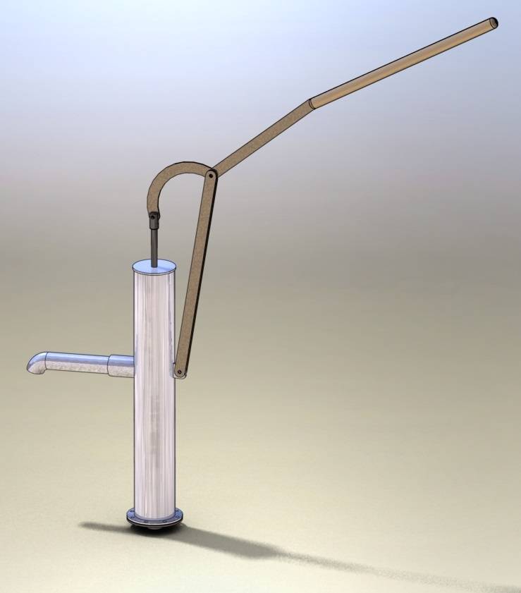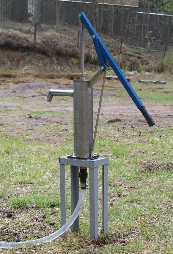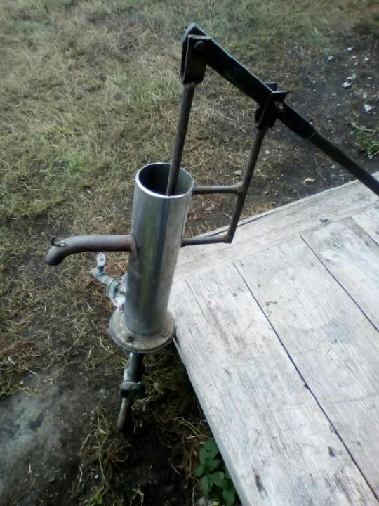 Nous avons donc presque assemblé une pompe à eau de nos propres mains. Vous avez besoin d'une poignée confortable, elle est fixée sur un support rigidement fixé à l'extérieur du boîtier.L'essentiel est que le bras de levier soit tel qu'il soit possible de soulever le piston sans trop d'effort. L'endroit que vous devez prendre avec votre main peut être muni d'un tampon en caoutchouc ou en silicone. La tige doit être solidement fixée au piston à l'intérieur et à son extrémité extérieure - avec une charnière au bout d'un long manche. Maintenant, il sera facile et pratique de faire fonctionner votre pompe maison.