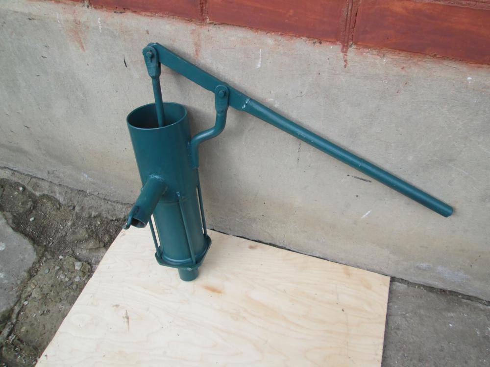 Une pompe à eau manuelle est utilisée dans les zones d'échantillonnage à partir de niveaux inférieurs de 7 à 30 m. Le principe est similaire au fonctionnement d'une pompe à piston, mais la longueur du "piston" (piston) est beaucoup plus grande et ressemble à une tige de forage .