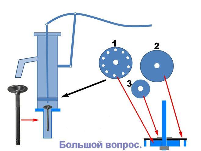 La production de ces pièces est possible à la fois en caoutchouc, en silicone, en métal et en plastique. Tout dépend de l'imagination du créateur. L'essentiel est le respect du principe du mouvement "dans une direction". Ainsi, une vanne fixée au bas de la pompe doit laisser entrer librement l'eau puisée dans un puits ou un puits et en même temps fermer de manière fiable l'entrée et résister à la pression d'un piston descendant. Et vice versa : la soupape à piston doit fonctionner parfaitement, laissant pénétrer le fluide dans le haut de la pompe lorsque le piston est abaissé et fermer de manière fiable le trou lorsqu'il tend vers la position supérieure. Un petit indice : les appareils ressemblant à un rivetage font un excellent travail avec des fonctions similaires.